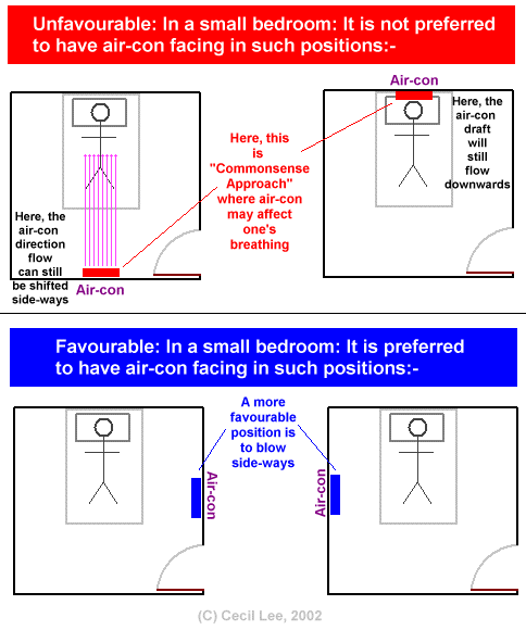 2. The attached illustrations has more to do with `commonsense approach' to Feng Shui. Where it is preferred that the air-con try to avoid blowing directly to a person's face.